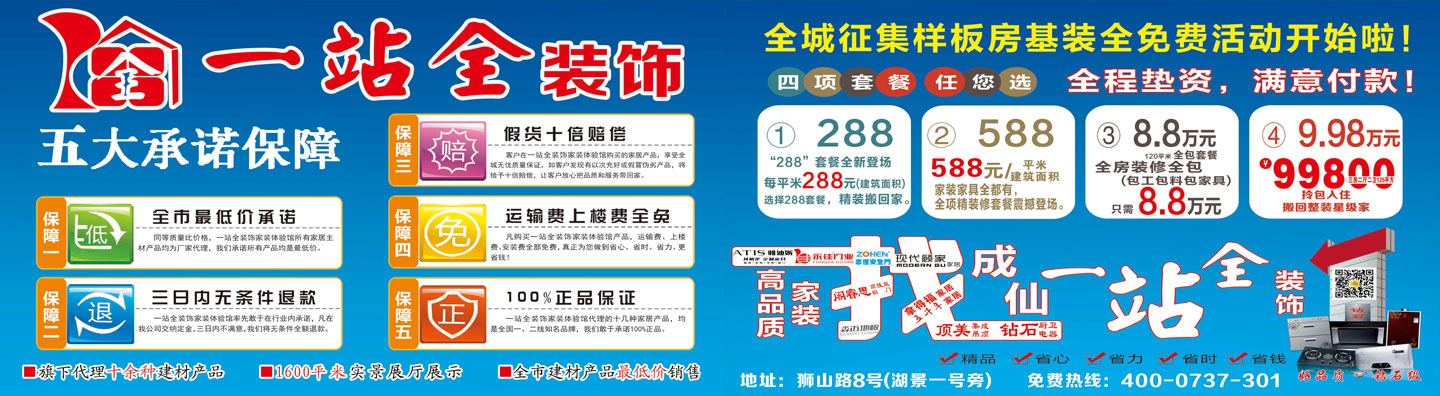 一站全裝飾總部地址:沅江市瑞豐商貿城29棟